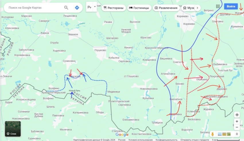И также наши части атакую южнее Суджи в районе Плёхово и Черкасской Конопельке. Пока без особого продвижения.