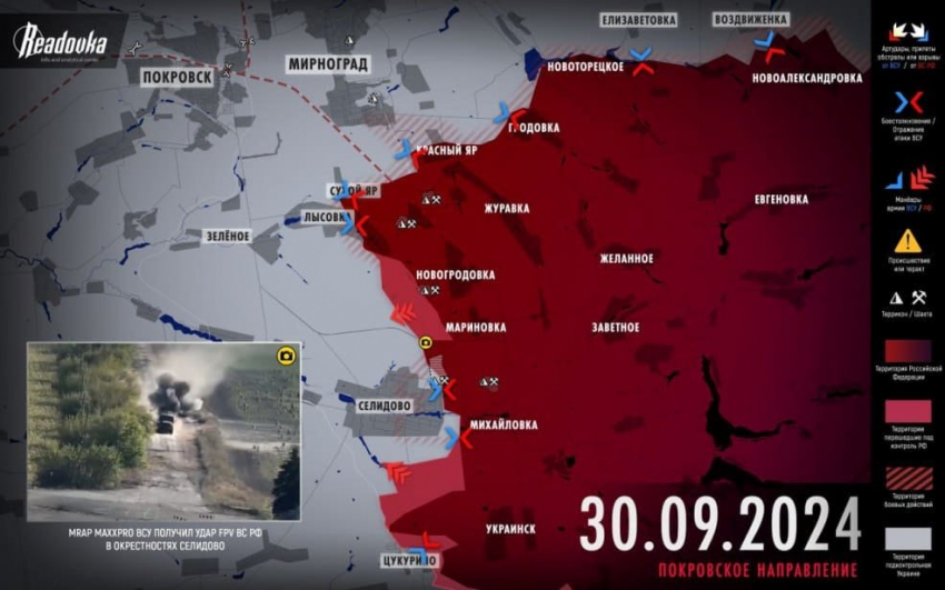 Свежая карта боевых действий на Украине от 01.10.2024. ВС РФ наступают. Обстановка на фронтах СВО на сегодня