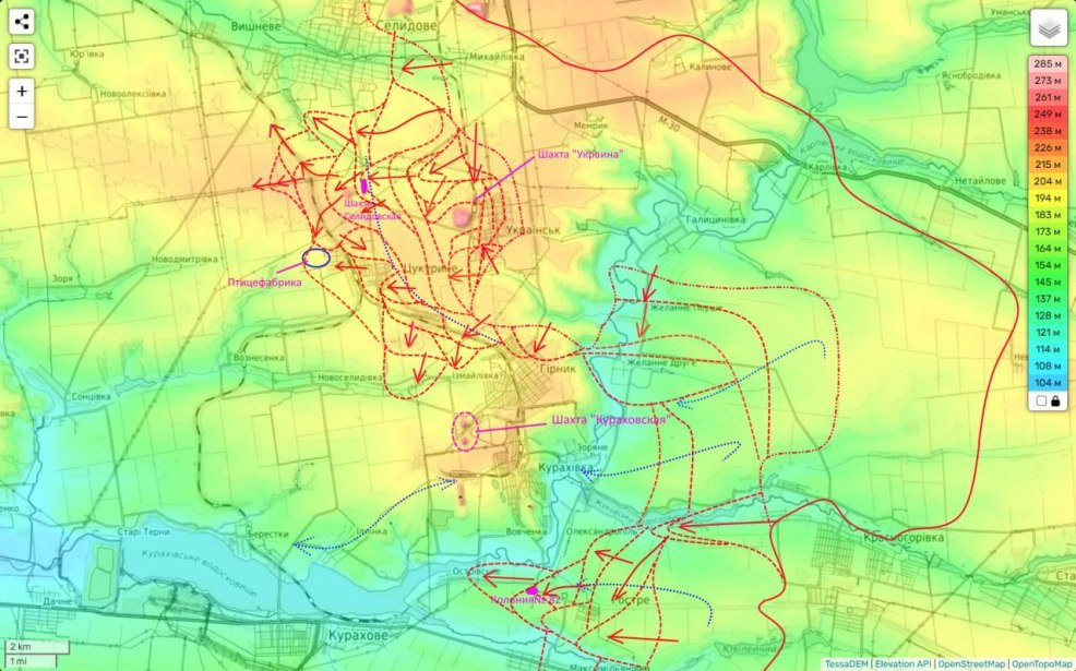 На Селидово-Кураховском направлении, несмотря на постоянно перебрасываемые сюда подкрепления противник продолжает пятится на этом наиважнейшем на сегодня участке фронта.