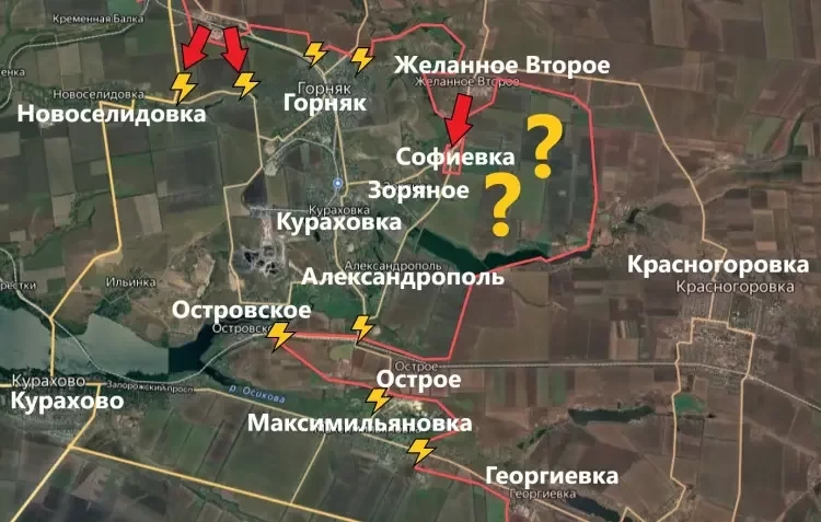 На Покровском направлении сообщают об освобождении села Зоряное, что к югу от Новожеланного Второго. Это означает охват с востока Горняка и Кураховки.