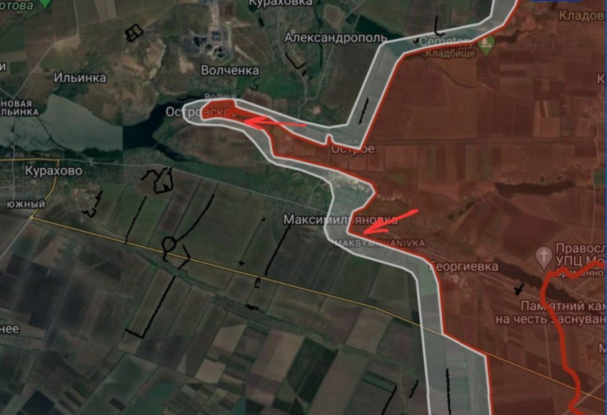 На Кураховско-угледарском направлении под контроль ВС РФ перешло Островское. Продолжаются встречные бои районе железнодорожной платформы Острый. В Максимильяновке российские войска ведут штурмовые действия в западном направлении.