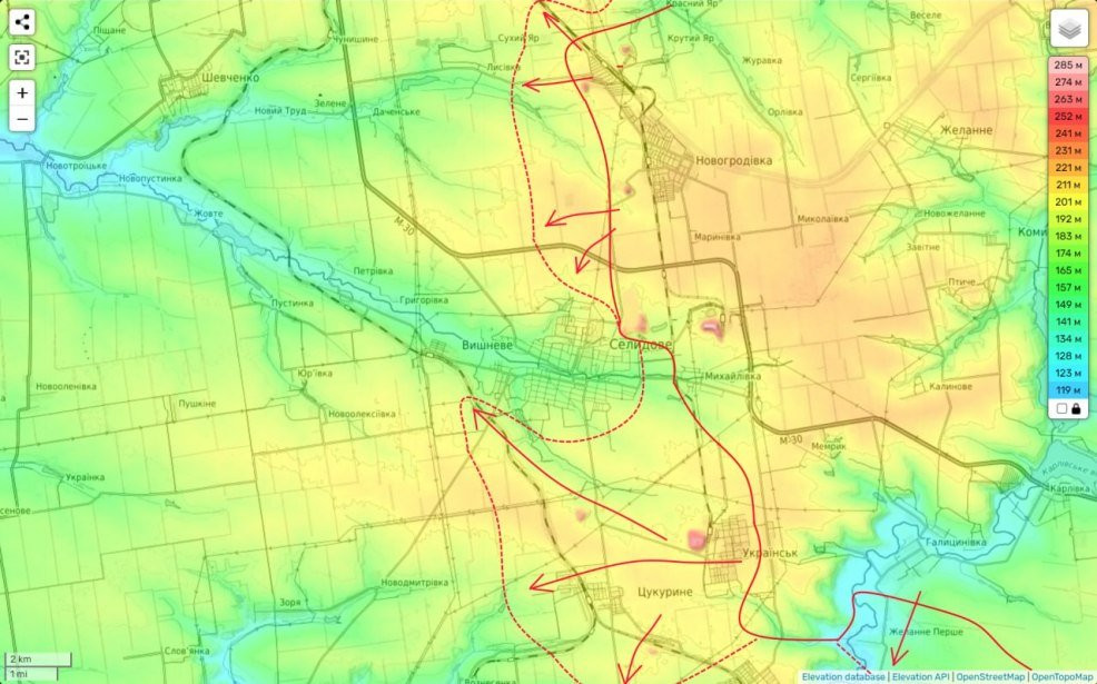 Бои за Селидово на карте: ситуация на сегодняшний день