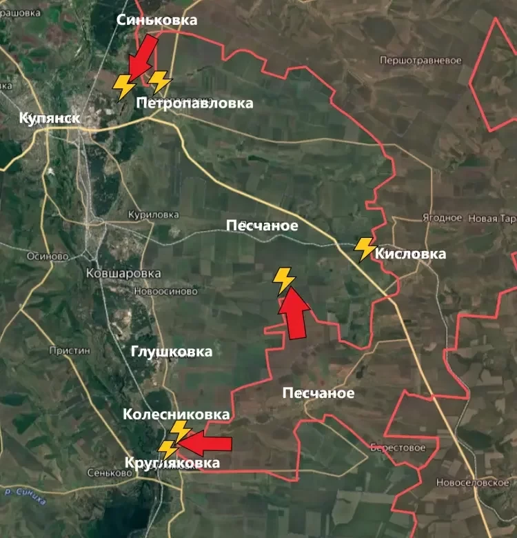 На Купянском направлении подразделения ВС РФ немного расширили зону контроля южнее Синьковки. Бои теперь идут не только на северо-западных окраинах Петропавловки, но и чуть западнее - на северо-восточных окраинах Кучеровки.