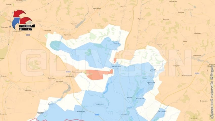 Примерно в этом районе произошел эпизод неудачной атаки ВС РФ и потерей нескольких единиц гусеничной и автомобильной бронетехники. По предварительным данным, причиной стала топографическая ошибка наступающих, сообщает Telegram-канал "Рыбарь".