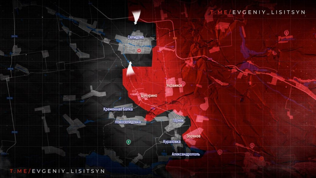 На Покровском направлении сокращается зона контроля ВСУ в Селидово, особенно вдоль улиц Мира, Лисичанская, Схидная и Ульяны Громовой. Противник пытается замедлить продвижение с помощью дронов.