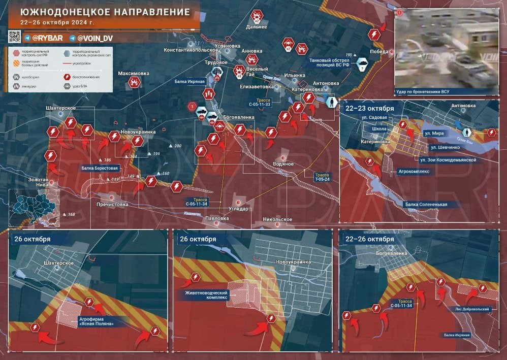 Подразделения ВС РФ предприняли несколько локальных атак на рубеже Богоявленка - Катериновка, а также завязали бои в Богоявленке. Ранее под контроль российских штурмовиков перешли лесополосы между Водяным и Богоявленкой у балки Икряная, лес Добровольский, а также крупный опорный пункт что, и позволило приступить к штурму села.