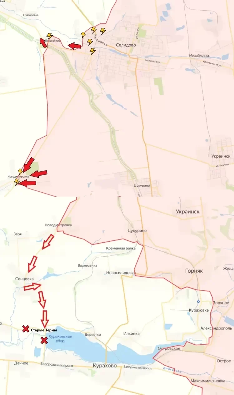 Подразделения ВС РФ практически полностью зачистили Шахтёрское от присутствия вражеских сил. Помимо этого, наши бойцы продвинулись на северо-востоке и подошли к окраинах населённого пункта Ясная Поляна. В Новоукраинке продолжаются встречные бои в юго-западной части населённого пункта. Также наши бойцы расширили зону контроля между Шахтёрским и Новоукраинкой, сообщает PulsePen. Так что, если дела у наших бойцов в селе пойдут не лучшим образом, другие подразделения могут постепенно выйти к северо-западным и северным окраинам. В Богоявленке бои идут на северных окраинах, где по-прежнему находятся вражеские силы.