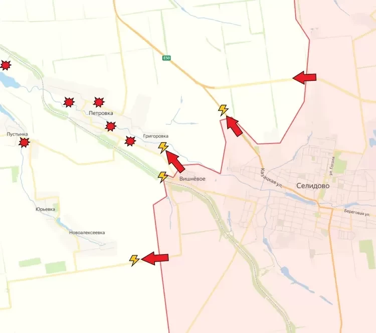 На Покровском направлении ВС РФ продвинулись северо-западнее Селидово по трассе Е-50. Продолжаются боестолкновения в Григоровке и на подступах к Новоалексеевке.