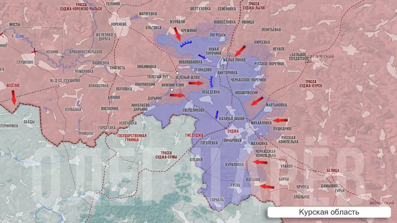 В Курской области фронт меняется не так быстро, как в прежние дни. При этом поступают сообщения о встречных боях под Новоивановкой и Плёхово. ВС России продолжают зачистку лесных массивов в Суджанском и Кореневском районах.