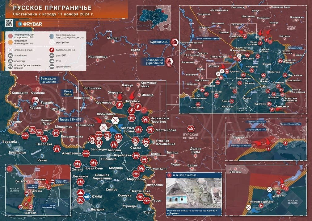 Новая карта боевых действий в Курской области по данным на 12.11.2024