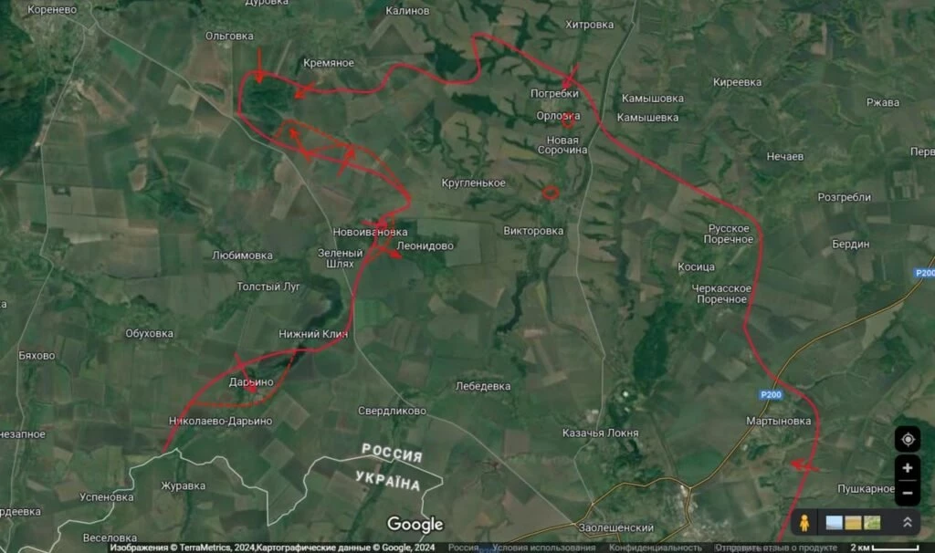Позднее в интернете также появились кадры атаки российских войск на стыке Кореневского и Суджанского районов к востоку от Кремяного в направлении Новой Сорочины вдоль урочища Воронок в направлении балки Ольха. Вероятно. само событие происходило одновременно на днях одновременно с накатом на юг со стороны Орлянки, сообщает Telegram-канал "Рыбарь".