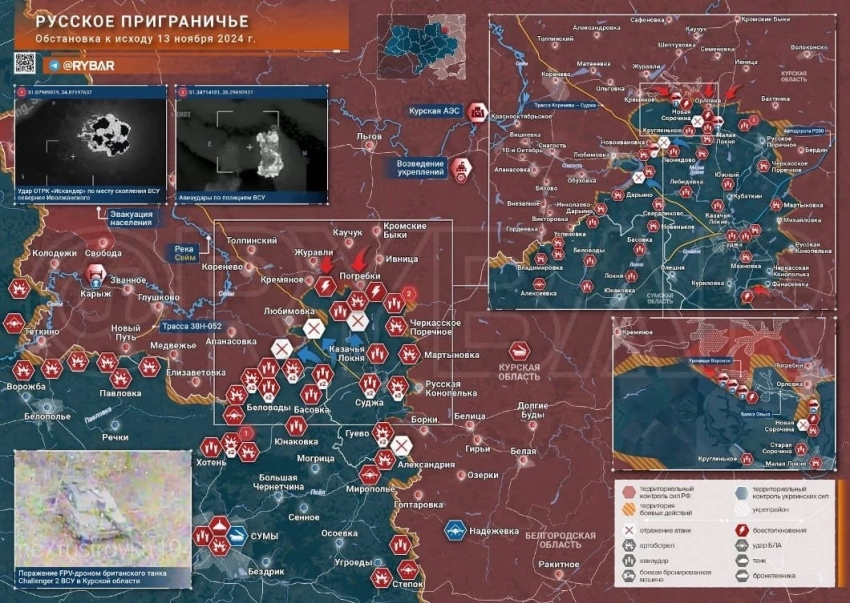 Новая карта боевых действий в Курской области по данным на 14.11.2024