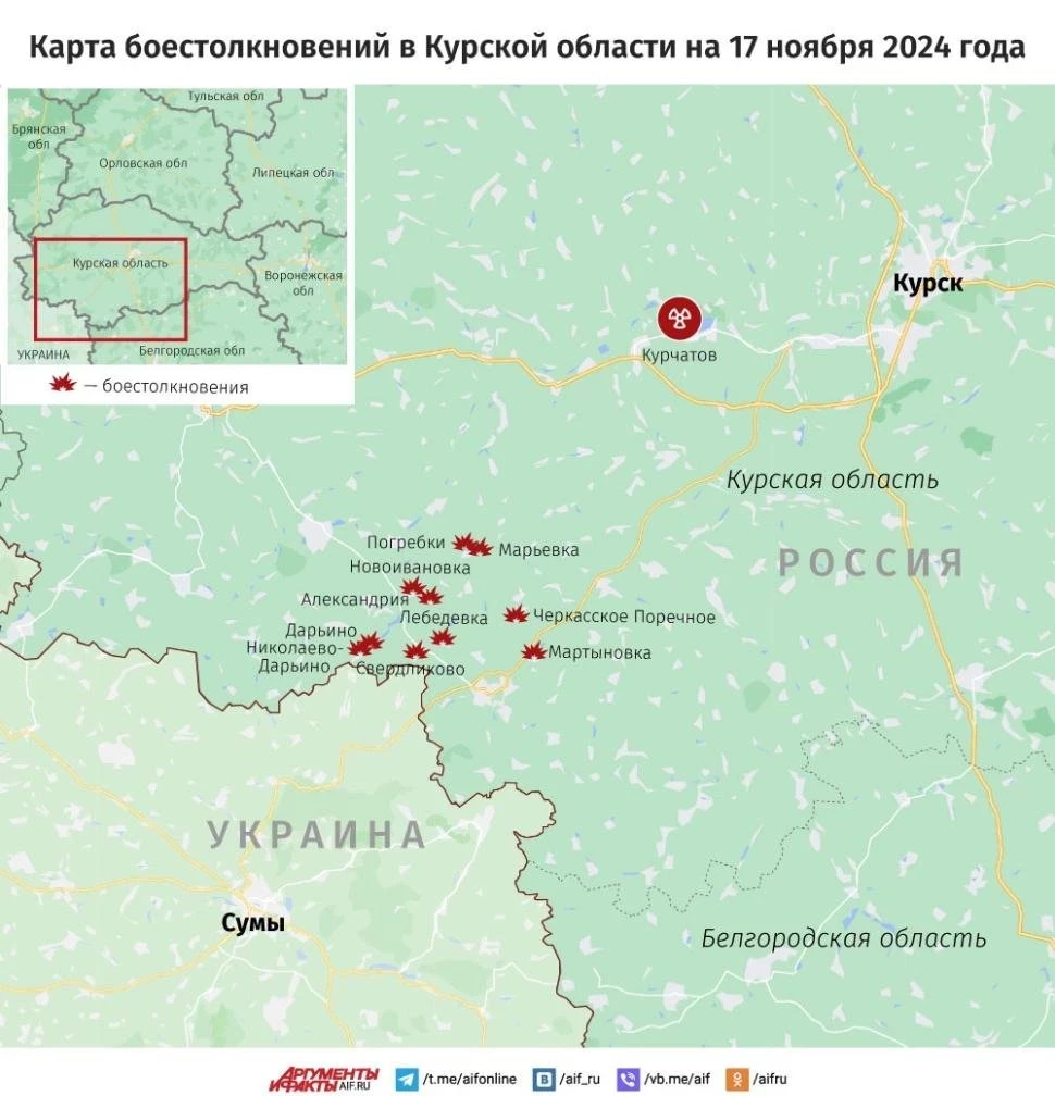 Карта боевых действий в Курской области. Информация на 17 ноября 2024 года