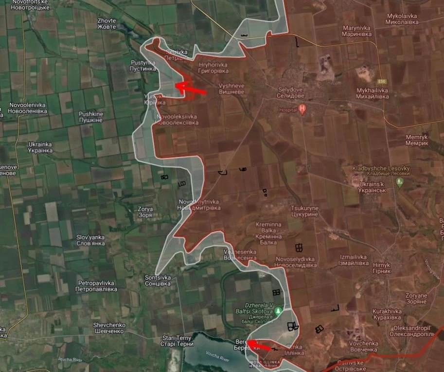 На Покровском направлении под контроль ВС РФ перешла Юрьевка. Российские войска ведут штурмовые действия в направлении Пушкино. Севернее Кураховского водохранилища ВС РФ имеют тактические успехи в районе Берестки, сообщает Telegram-канал "БелВПО".