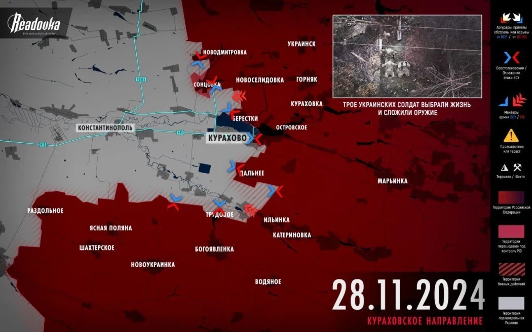 Обзор событий на фронтах специальной военной операции (СВО) на Украине, последние новости от 29 ноября 2024 года, а также свежие карты боевых действий - в материале сайта N4k.