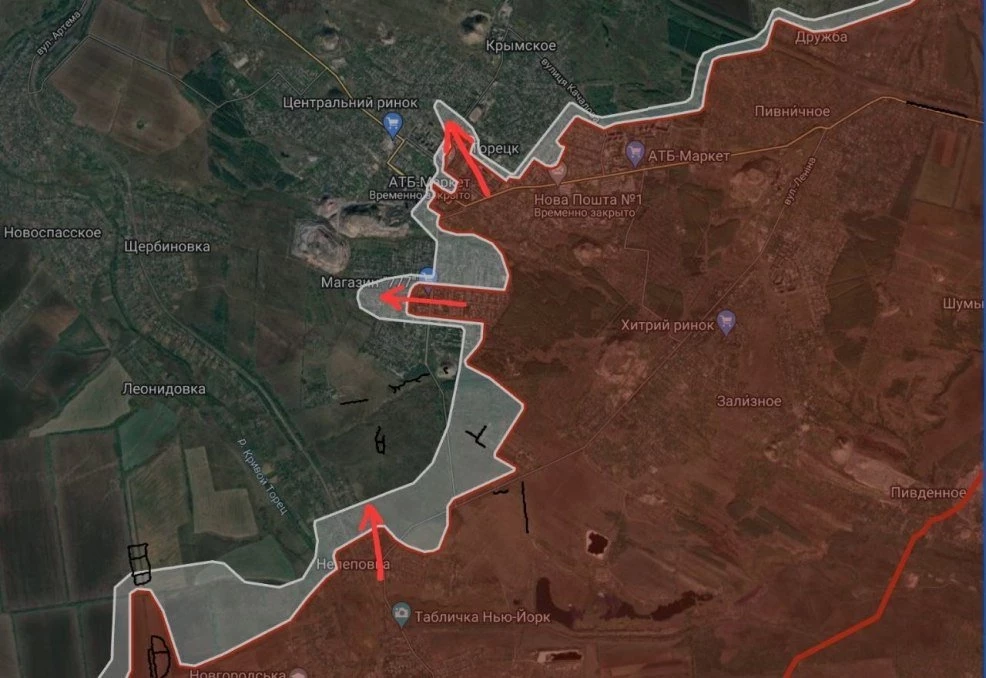 На Торецком направлении российские войска ведут штурмовые действия в центре Торецка и давят в Нелеповке, имеются тактические успехи.