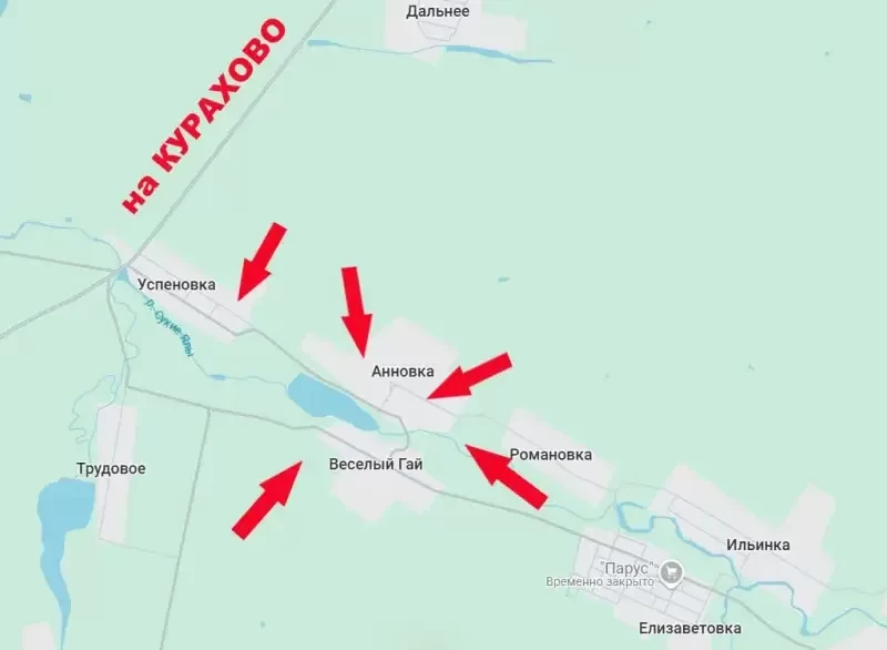 С места поступают сообщения о том, что большая часть населённого пункта Анновка на данном участке фронта перешла под контроль российской армии. Анновка расположена восточнее Успеновки, на берегу небольшого водохранилища, образованного рекой Сухие Ялы.