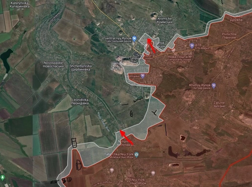 На Торецком направлении в Торецке российские войска имеют тактические успехи в квартале многоэтажных домов.