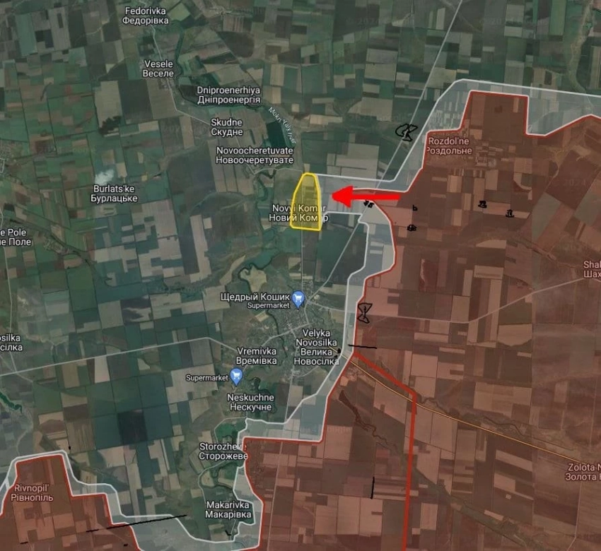 На Великоновосёлковском направлении российские войска ведут штурмовые действия в восточной части Нового Комара, имеются тактические успехи.