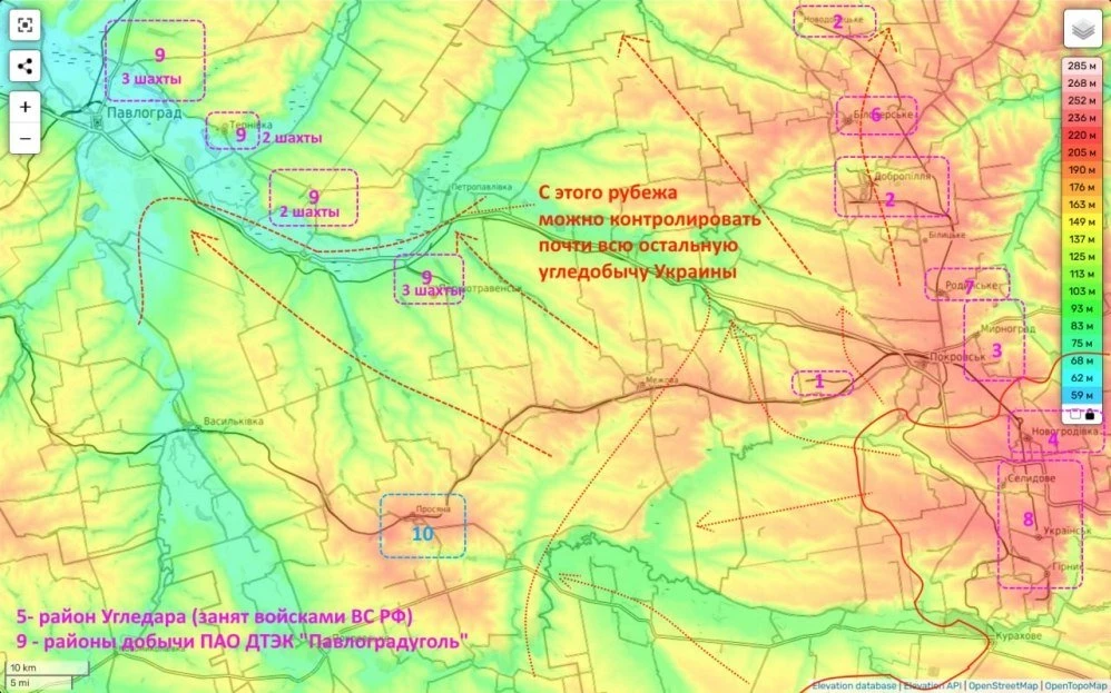 Таким образом после охвата Покровска и его освобождения ВС РФ достаточно будет пройти ещё 40-70 км и украинская энергетика и металлургия рухнут безо всяких ударов крылатых ракет.