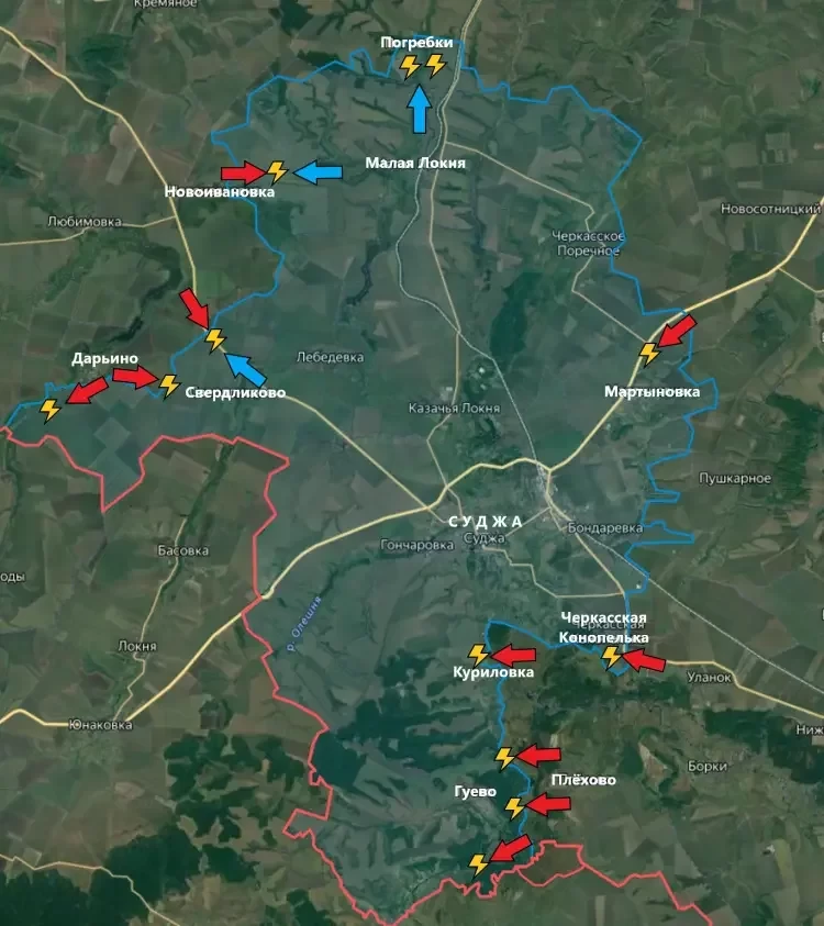 Есть продвижение на юге Суджанского района у реки Псёл - к Куриловке и Гуево.