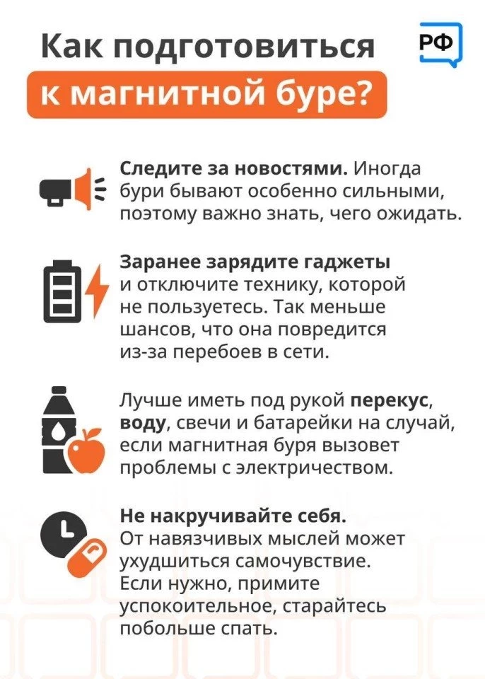 Кроме того, сегодняшний вечер принесёт и ещё одну геомагнитную бурю силой в 4 балла. Она прогнозируется на временной отрезок с 22:00 до 23:00 по московскому времени.