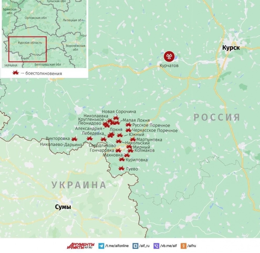 Сегодня, по данным с мест, наши войска вели бои в районе Гуево, что южнее Суджи, правда, об изменениях позиций войск пока сведений нет.