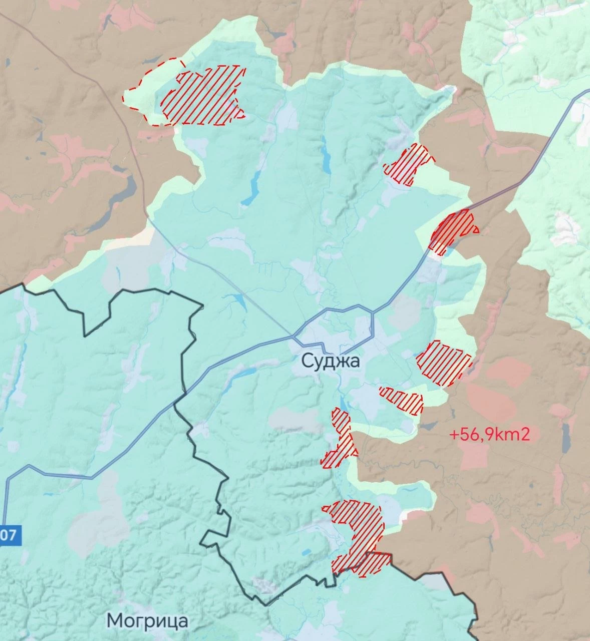 В Курской области группировка войск "Север" продолжает вести упорные бои в лесополосах Суджанского района, а также в окрестностях Леонидово, Куриловка и Николаево-Дарьино.