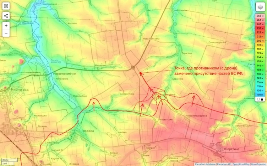 На южных подступах к самому Покровску интенсивные бои также продолжаются. Они ведутся в прилегающих к городу селах. Появилась информация об атаках российских войск на линии Песчаное – Котлино, что может указывать на планы по охвату агломерации Покровск - Мирноград с юго-запада и перерезания логистики ВСУ (через Котлово проходит железная дорога и автодорога Т-04-06 Покровск - Чаплино).