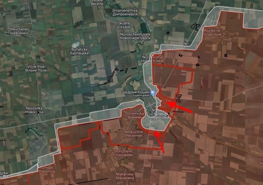 На Великоновосёлковском направлении российские войска расширили контроль территории в северной и восточной частях Великой Новосёлки. Имеются тактические успехи южной южнее упомянутого населенного пункта.
