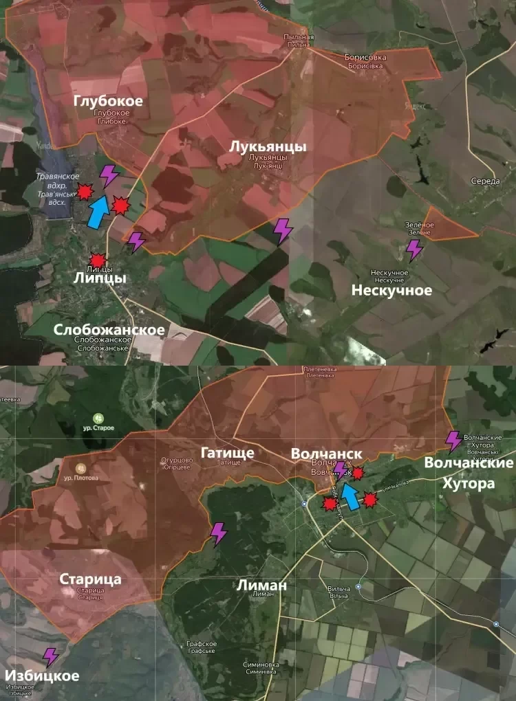 В Волчанске продолжаются встречные бои, которые идут с переменным успехом. ВСУ провели несколько контратак, которые были отражены. В свою очередь, подразделения ВС РФ также провели ответные атаки, в ходе которых удалось оттеснить противника до территории Волчанского агрегатного завода, пишет PulsePen.