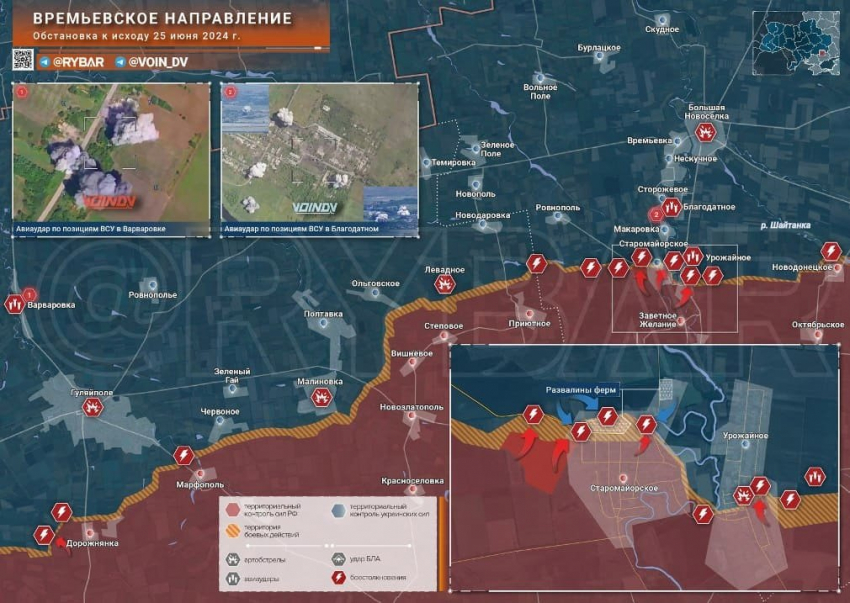 На Времьевском направлении ВС РФ отбили за сутки несколько контратак противника и подтянули фланг западнее Старомайорского.