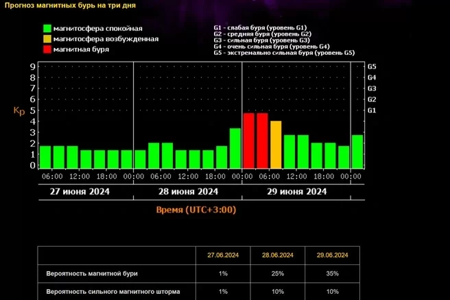 Стало известно, каким будет геомагнитный фон 28.06.2024