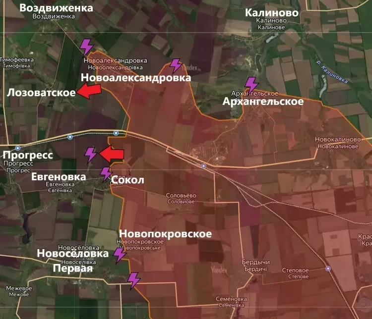 На Покровском направлении подразделения Армии России незначительно продвинулись на северо-запад от Новоалександровки в направлении Воздвиженки. До самого населённого пункта наши бойцы пока что не добрались. Помимо этого, от Новоалександровки подразделения ВС РФ продвинулись на юго-запад в направлении Лозоватского.