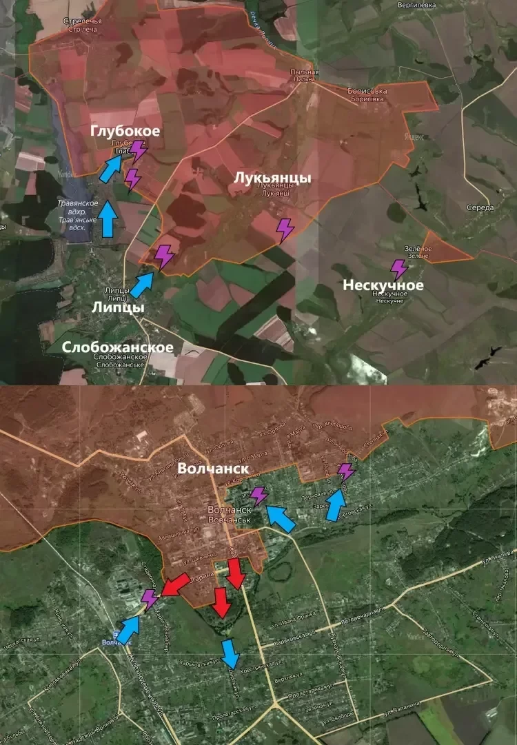 В Волчанске ситуация остаётся напряжённой. Российские подразделения расширяют зону контроля в районе Агрегатного завода, в промзоне которого сохраняется присутствие ВСУ. Восточнее украинские формирования проводят контратаки с опорой на район многоэтажек, стремясь выдавить ВС РФ из города, пишет PulsePen.