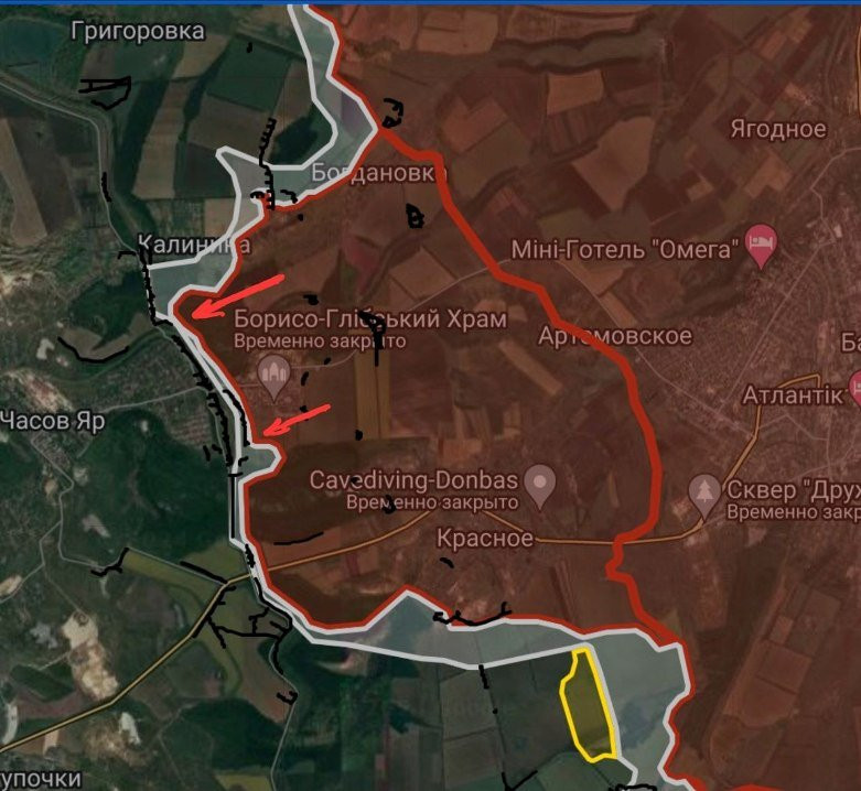 На ЧасовЯрском направлении обстановка без существенных изменений. ВС РФ продолжают давить в Калиновке и урочище Орлова.