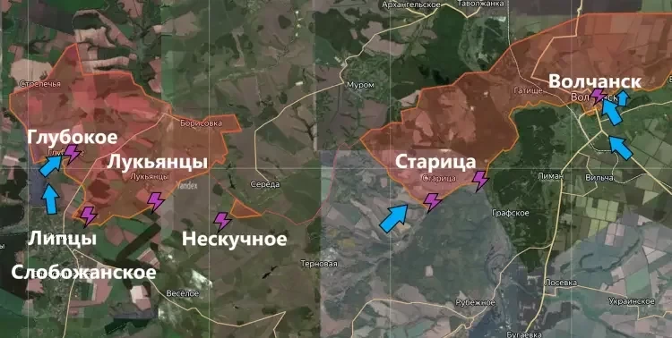 В Волчанске бои идут в окрестностях квартала многоэтажек, а также к востоку от этой зоны. Западная часть Волчанского агрегатного завода, подконтрольная на текущий момент ВС РФ, постоянно подвергается ударам управляемыми авиабомбами западного производства. В городе идут тяжелые бои.