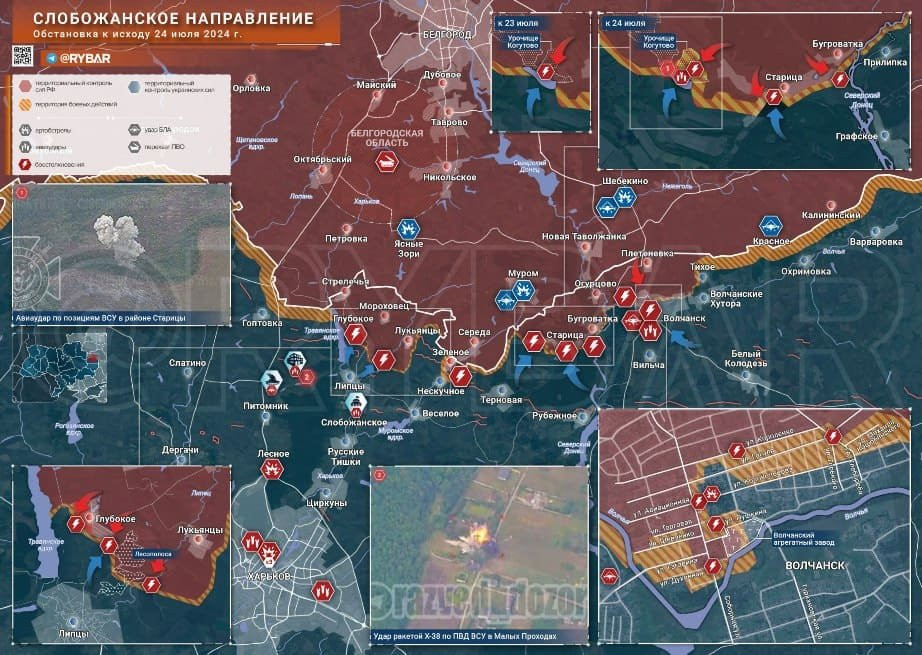 Новая карта боевых действий в зоне СВО на Украине сегодня, 25 июля 2024 года