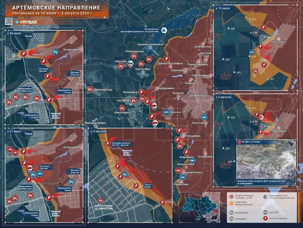 Свежая карта боевых действий на Украине: обстановка на фронтах СВО на 04.08.2024