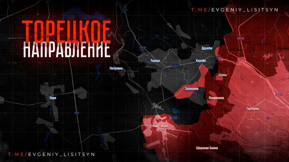 На Торецком фронте ВСУ всеми силами стремятся переломить ситуацию. И, к сожалению, имеют локальные успехи. Нашим пришлось пока уступить контроль над частью территории на севере Новгородского (Нью-Йорка), в районе школы. Кроме этого, противнику удалось ослабить наш огневой контроль над дорогой через Нелеповку, куда ВСУ отступали из окружения. Враг подтягивает резервы. Наши военные сегодня отбили две контратаки. Есть небольшое продвижение к Розовке (Александрополю).