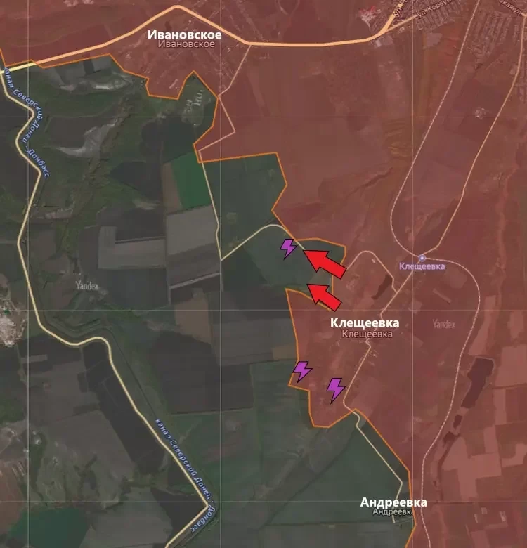 ВС РФ выбили боевиков ВСУ из населенного пункта Желанное и продвинулись на участке 8,3 на 2,5 км. Ранее сообщалось об установлении контроля над населенными пунктами Ивановка, Свиридоновка, Лисичное. Ведутся боевые действия в Гродовке.