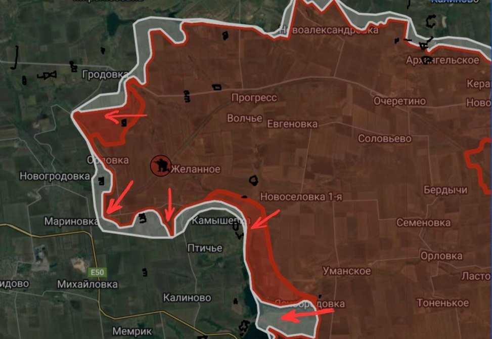 На Покровско-Селидовском направлении несмотря на существенное продвижение ВС РФ за последнюю неделю на Покровском направлении, на сегодняшний день порадовать нечем. Скорее, наоборот. Часть информации, предоставленной во вчерашней сводке не подтвердилась. Так, например, идут бои в Крутом Яре, населённый пункт и террикон к западу от него ещё не перешли под контроль ВС РФ. Также террикон шахты “Котляревская”, что северо-восточнее Селидово, всё ещё находится под контролем ВСУ.
