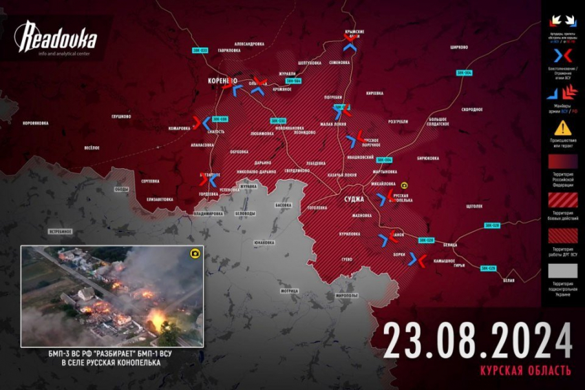 Новая карта боевых действий в зоне СВО на Украине от 24.08.2024