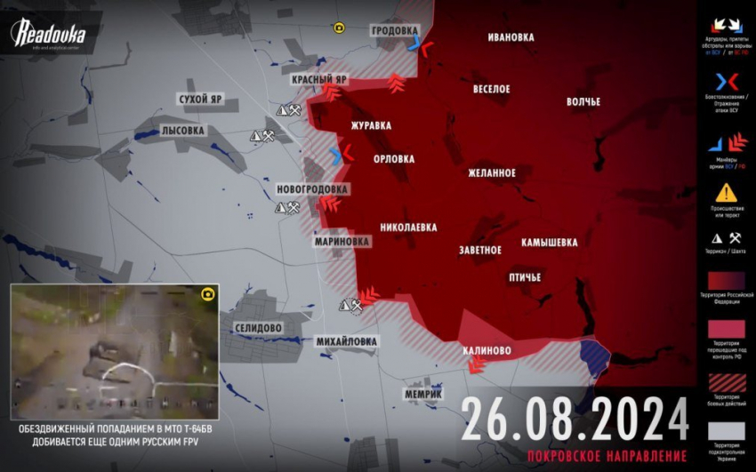Новая карта боевых действий в зоне СВО на Украине от 27.08.2024