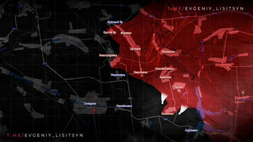 На Покровском направлении наши парни выбили боевиков ВСУ из Калиново. Прорыв этой линии выводит ВС РФ в тыл гарнизону ВСУ в Карловке. Западнее российская армия продвигается в Гродовке. В Новогродовке по данным с мест под контролем армии России уже до 70% города и серьезных укреплений и больших сил у противника здесь нет.