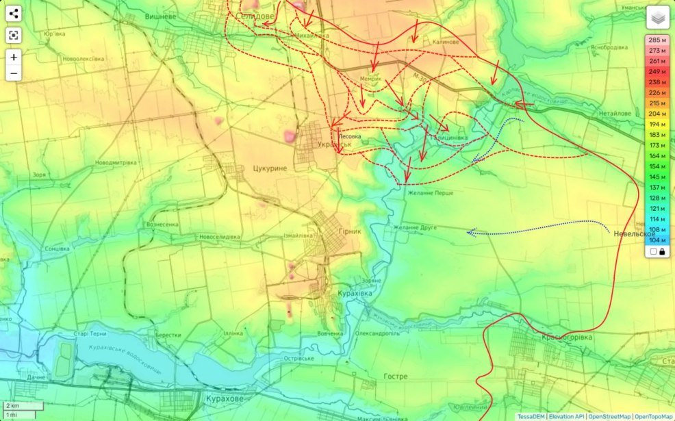 Таким образом обеспечивается фланг для дальнейшего штурма Торецка, который теперь можно попытаться охватить с севера через пригородные села Крымское и Дачное. После чего противнику оборонять город станет намного труднее.