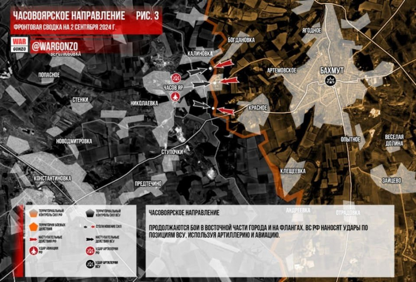 Обновлённая карта боевых действий на Украине по данным на 13:00 мск от 02.09.2024
