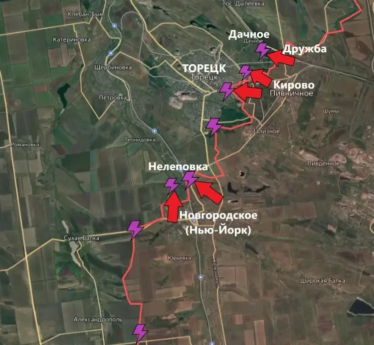 В самом Торецке (Дзержинске) наши штурмовики расширили зону контроля на востоке. В южной части населённого пункта подвижек нет.