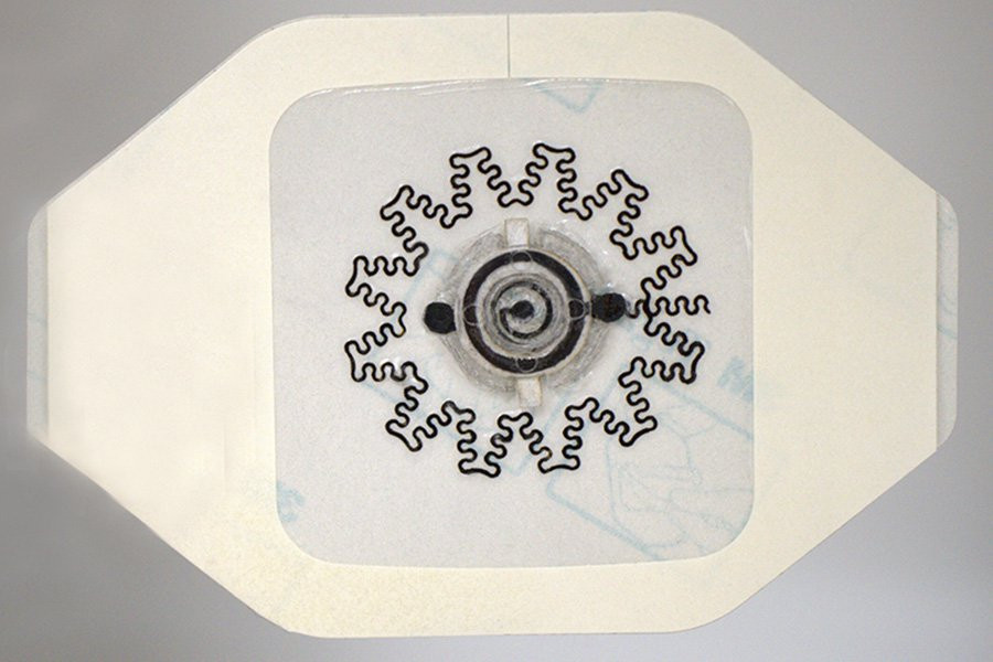 Электроды сконструированы таким образом, что они могут сгибаться вместе с повязкой и прилегать к поверхности хронических ран, которые часто бывают глубокими и имеют неправильную форму.