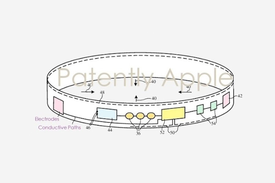 В одном из ключевых патентов Apple представлена новая разработка — тканевое устройство, выполненное из эластичного материала. Такая повязка может принимать форму браслета, повязки на голову или даже стать частью спортивной одежды — от шорт и йога-леггинсов до перчаток и носков. Основная особенность "умного" браслета — это встроенная электроника, подключенная к волокнам ткани. Это позволяет проводить целый ряд замеров, таких как: